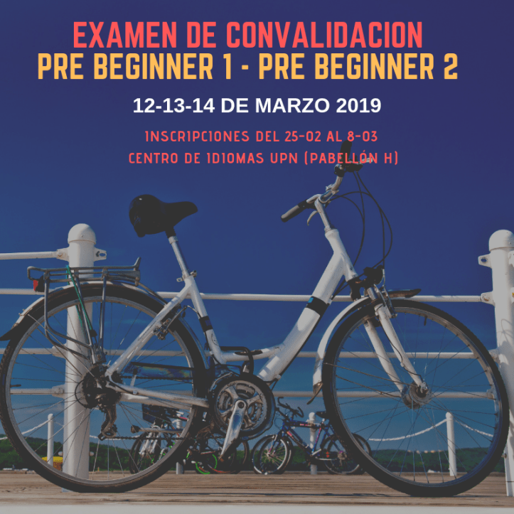 February 24, 2019 Omar Maguiña Rivero Examen de Convalidación – Pre Beginner 1 – 2 Share this: Share on X (Opens in new window) X Share on Facebook (Opens in new window) Facebook Like Loading...