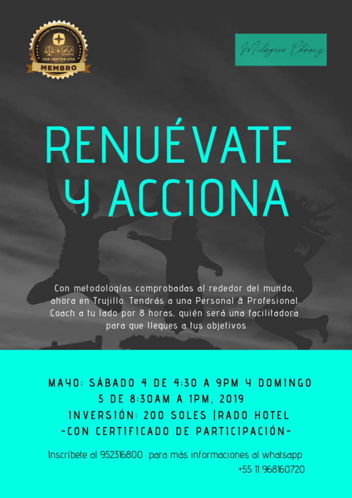 April 16, 2019 Omar Maguiña Rivero curso “Renuévate y acciona” Share this: Share on X (Opens in new window) X Share on Facebook (Opens in new window) Facebook Like Loading...