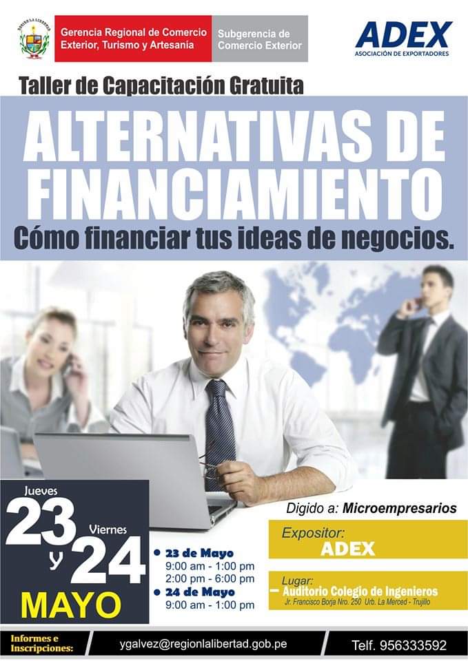 May 16, 2019 Omar Maguiña Rivero Taller ADEX: Alternativas de Financiamiento Share this: Share on X (Opens in new window) X Share on Facebook (Opens in new window) Facebook Like Loading...