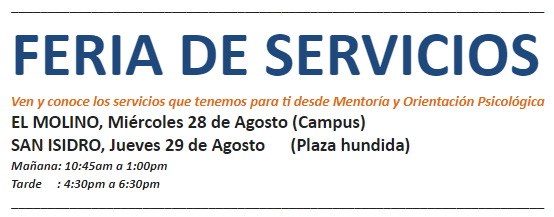 Feria de Servicios del Centro de Información, para modalidad pre-grado, campus El Molino en los siguientes horarios:
