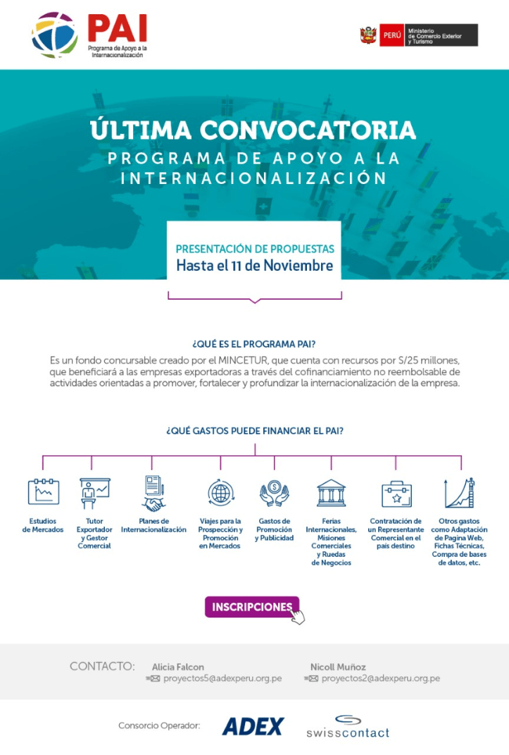 October 28, 2019October 28, 2019 Omar Maguiña Rivero Programa de Apoyo a la Internacionalización Inscripción Share this: Share on X (Opens in new window) X Share on Facebook (Opens in new window) Facebook Like Loading...