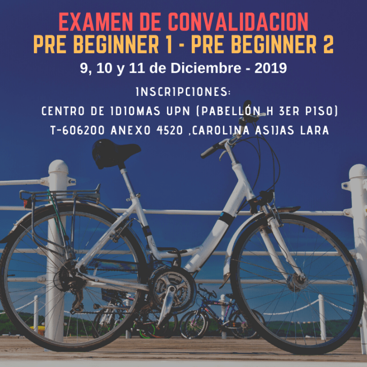 Los invitamos a participar de los Exámenes de Convalidación de los cursos de su malla curricular Pre beginner 1 y Pre beginner 2 del semestre . Las inscripciones están abiertas del 11 de noviembre al 3 de diciembre y se pueden realizar de 2 maneras: