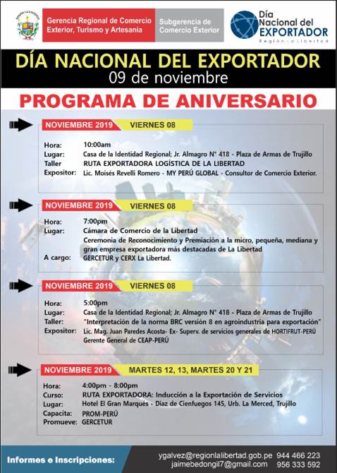 October 31, 2019October 31, 2019 Omar Maguiña Rivero Día del Exportador Share this: Share on X (Opens in new window) X Share on Facebook (Opens in new window) Facebook Like Loading...