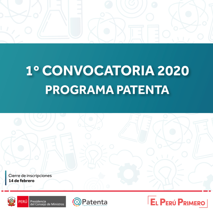 February 4, 2020February 4, 2020 Omar Maguiña Rivero Programa Patenta – Indecopi https://www.patenta.pe/programa-patenta Share this: Share on X (Opens in new window) X Share on Facebook (Opens in new window) Facebook Like Loading...