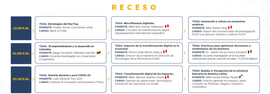 October 22, 2020 Omar Maguiña Rivero Business Workshop 2020-2 Inscripciones: https://bit.ly/3nUSUguEvento 28: https://bit.ly/356JWnTEvento 29: https://bit.ly/3427iLVEvento 30: https://bit.ly/37b5PoH Share this: Share on X (Opens in new window) X Share on Facebook (Opens in new window) Facebook Like Loading...