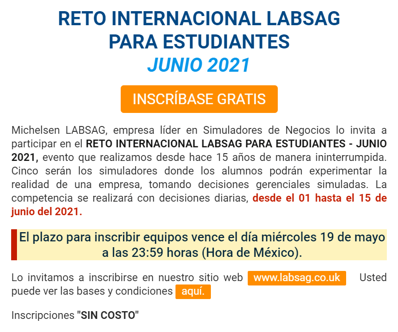 May 2, 2021 Omar Maguiña Rivero Reto Internacional Labsag Para Estudiantes Share this: Share on X (Opens in new window) X Share on Facebook (Opens in new window) Facebook Like Loading...