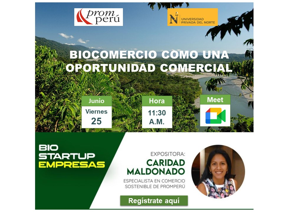 El día viernes 25, tendremos una charla a cargo de Caridad Maldonado, especialista de PROMPERU sobre Biocomercio como oportunidad de Negocios.