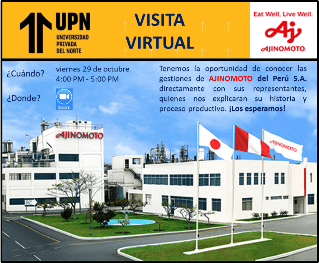 October 30, 2021 Omar Maguiña Rivero Visita Virtual a Ajinomoto Fecha: viernes 29 de octubre de 2021Horario: 4:00 PM a 5:00 PMPlataforma Zoom: Enlace de ingreso Share this: Share on X (Opens in new window) X Share on Facebook (Opens in new window) Facebook Like Loading...