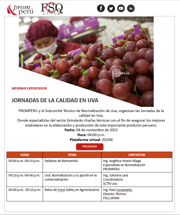 November 4, 2021 Omar Maguiña Rivero Jornadas de la Calidad en Uva – jueves 04 de noviembre Inscripción: http://rutexins.promperu.gob.pe/registro/evento/7737 Share this: Share on X (Opens in new window) X Share on Facebook (Opens in new window) Facebook Like Loading...